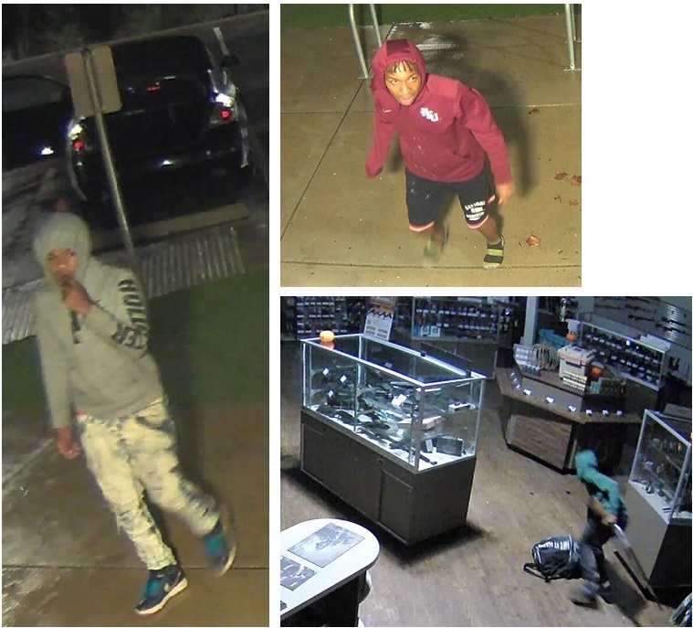 The suspects were seen leaving the scene in a black Nissan Altima or similar model, and carried a black duffel bag with white lettering “hit it hard” and an image of red boxing gloves.